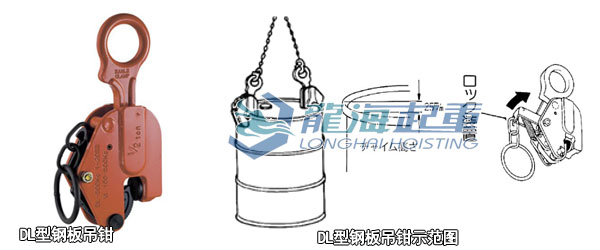 DL型鋼板吊鉗通過(guò)夾住圓鐵桶上的凸緣,而進(jìn)行起吊工作,DL型鋼板吊鉗本體采用合金剛鍛造,高強(qiáng)度,壽命長(zhǎng),DL型鋼板吊鉗需要配套使用(以2個(gè)或者2個(gè)以上為一套使用)